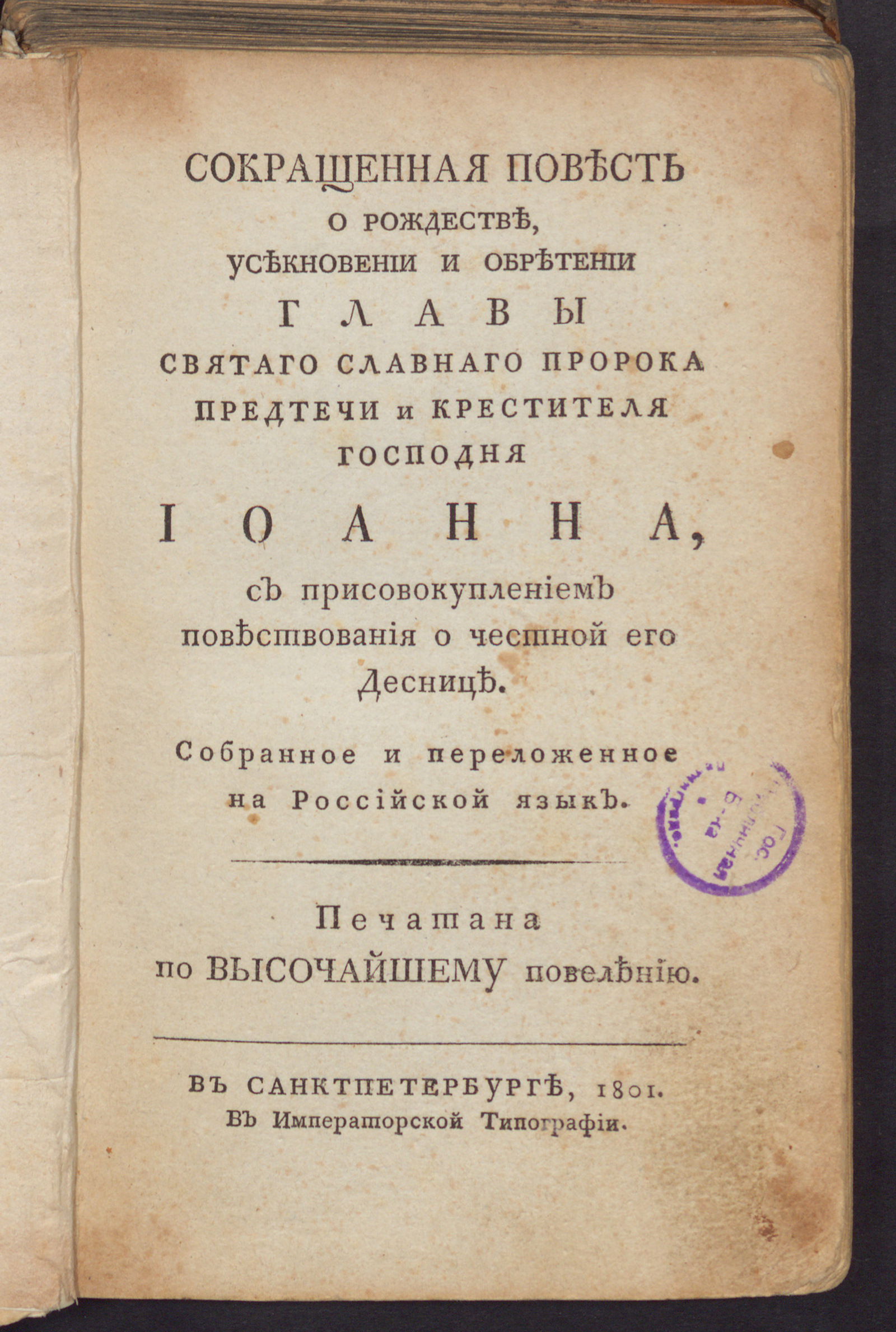 ИздательствоСокращенная повесть о Рождестве, усекновении и обретении главы святаго славнаго пророка Предтечи и крестителя Господня Иоанна, с присовокуплением повествования о честной его деснице