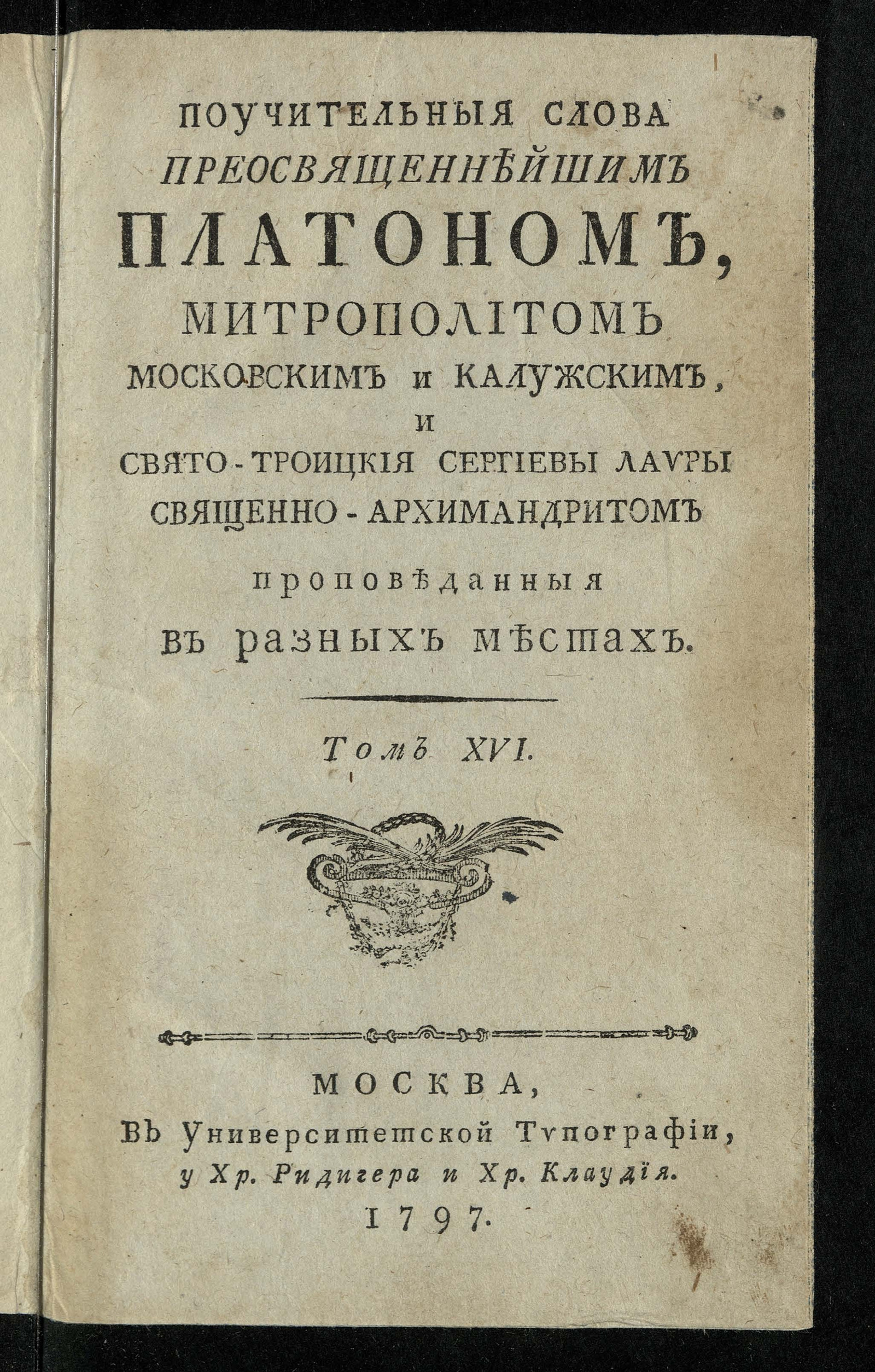 Сказыванныя его императорскаго высочества учителем и придворным проповедником, преосвященнейшим Платоном, архиепископом Московским и Калужским и Святотроицкия Сергиевы лавры священно-архимандритом