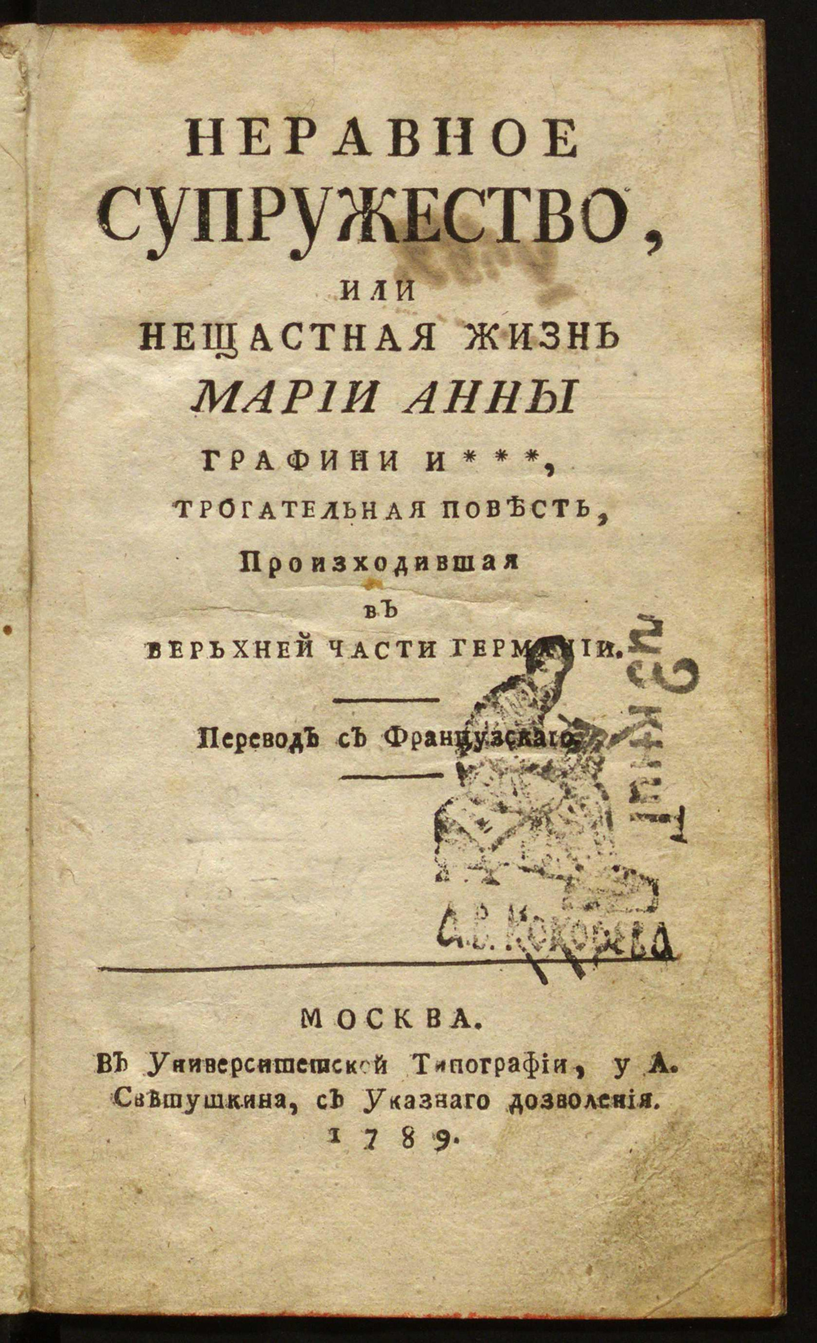 ИздательствоНеравное супружество, или Нещастная жизнь Марии Анны графини И***