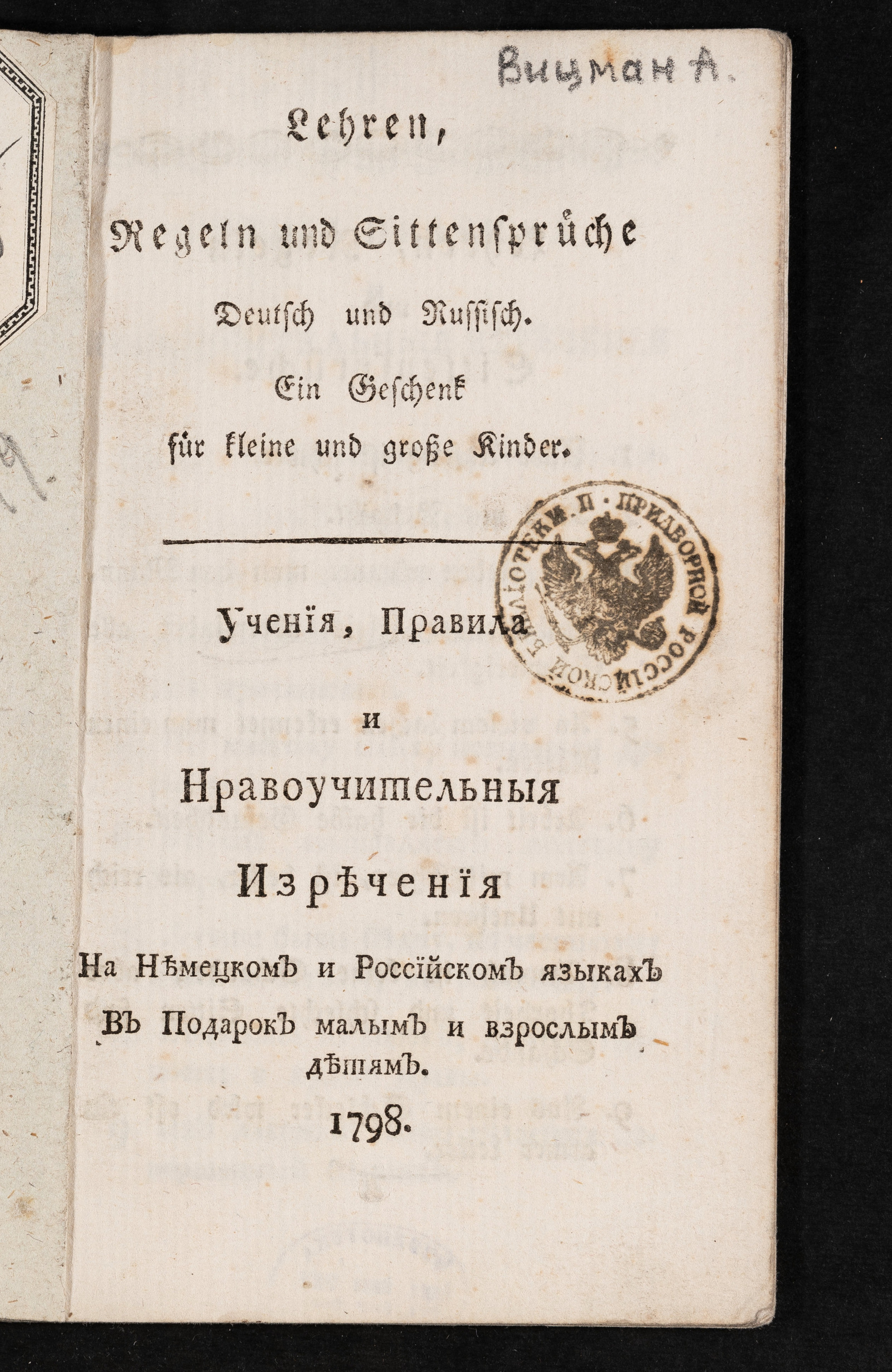 Место изданияУчения, правила и нравоучительныя изречения