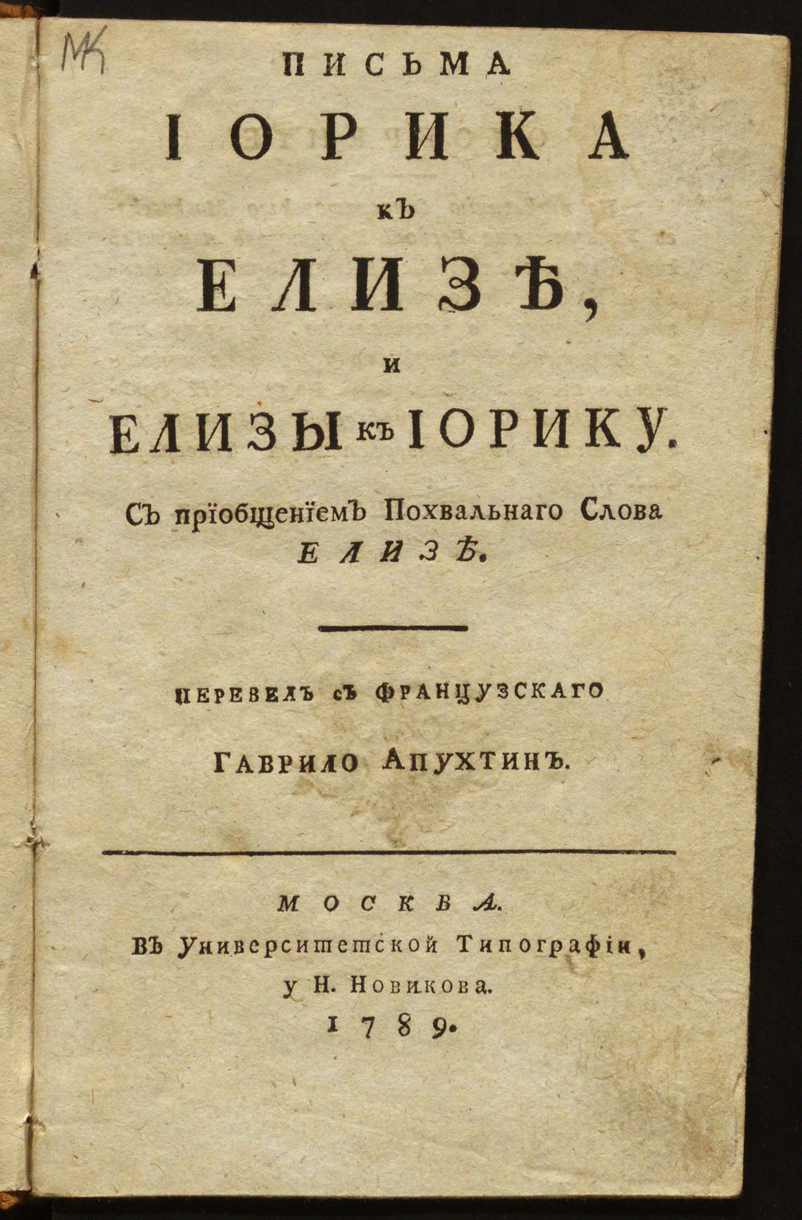 Изображение книги Письма Иорика к Елизе, и Елизы к Иорику Открыть цифровую копию Показать в реестре