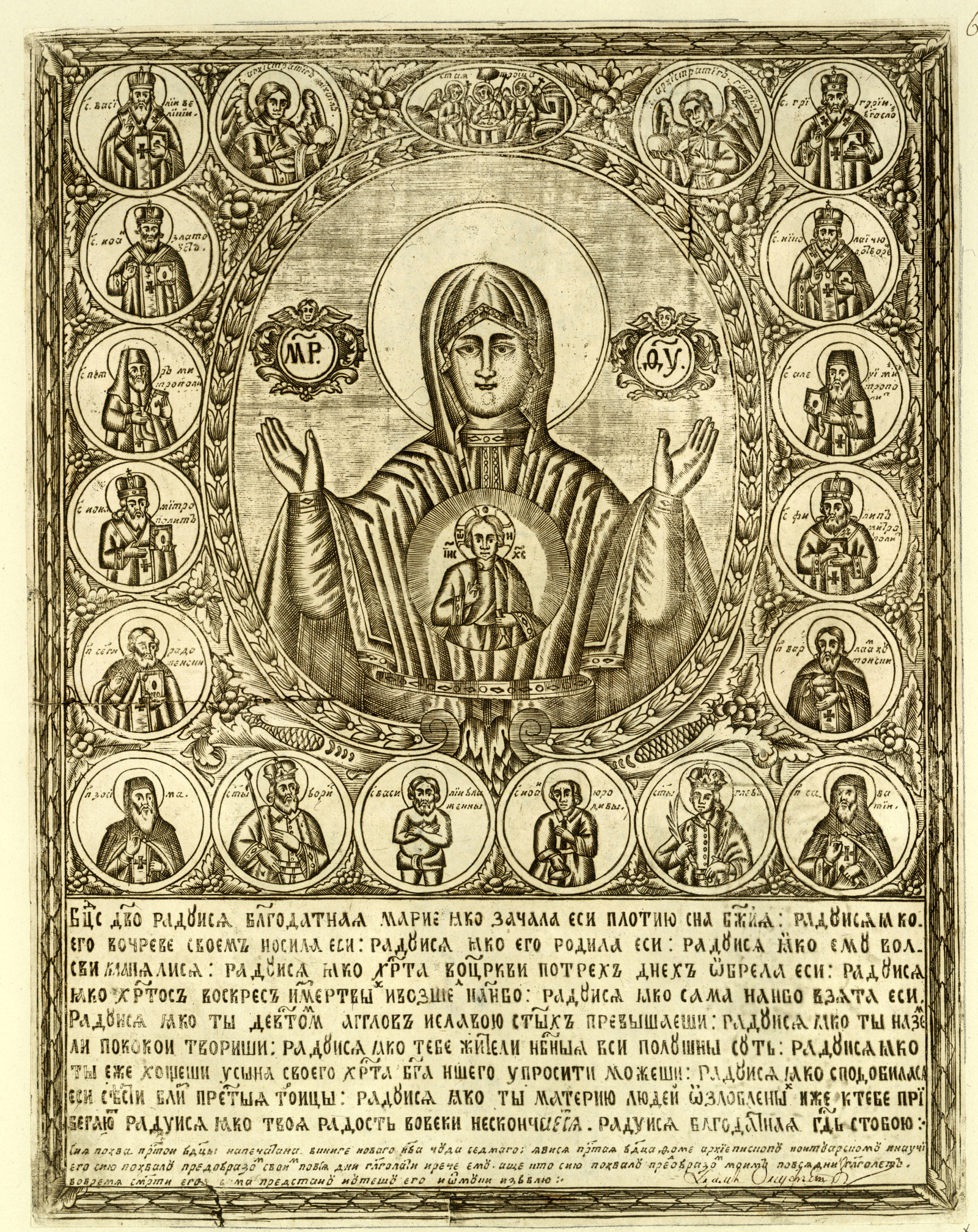 Место издания[Образ Пресвятой Богородицы Знамение, со святыми]: [лубок]