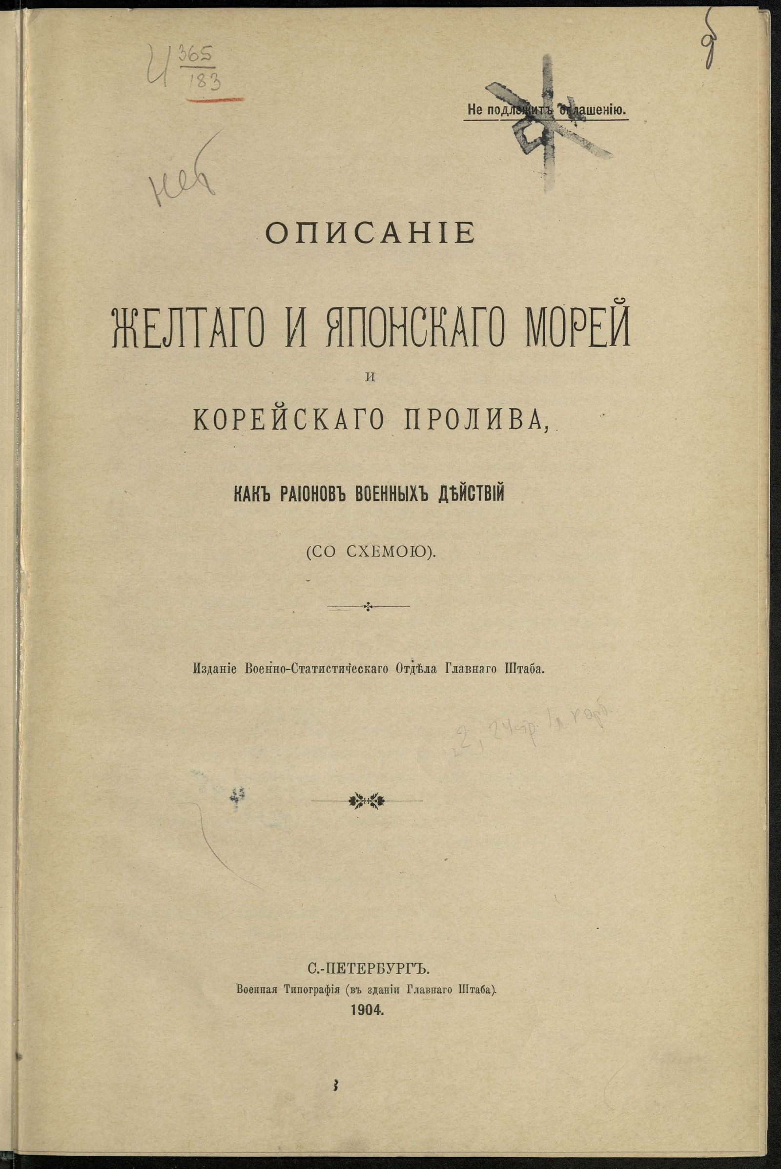 ИздательствоОписание Желтаго и Японскаго морей и Корейскаго пролива, как районов военных действий