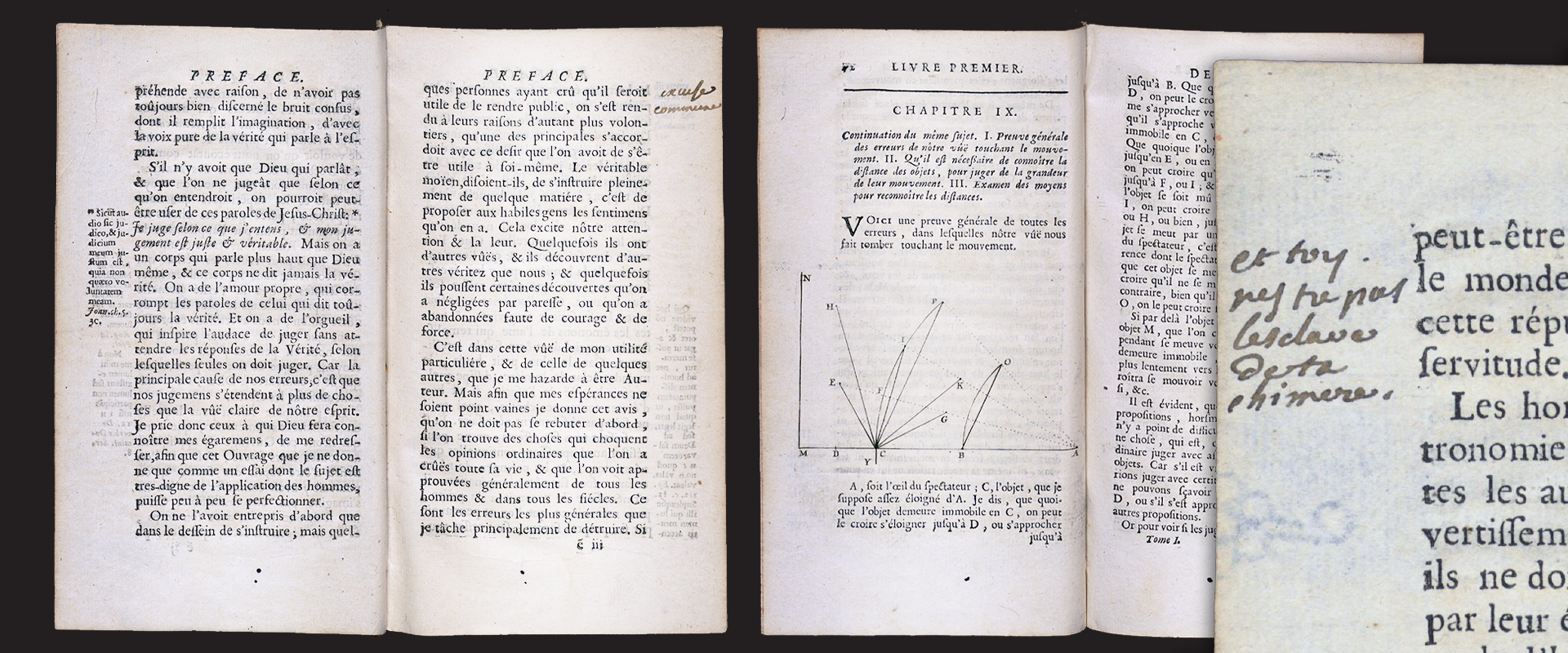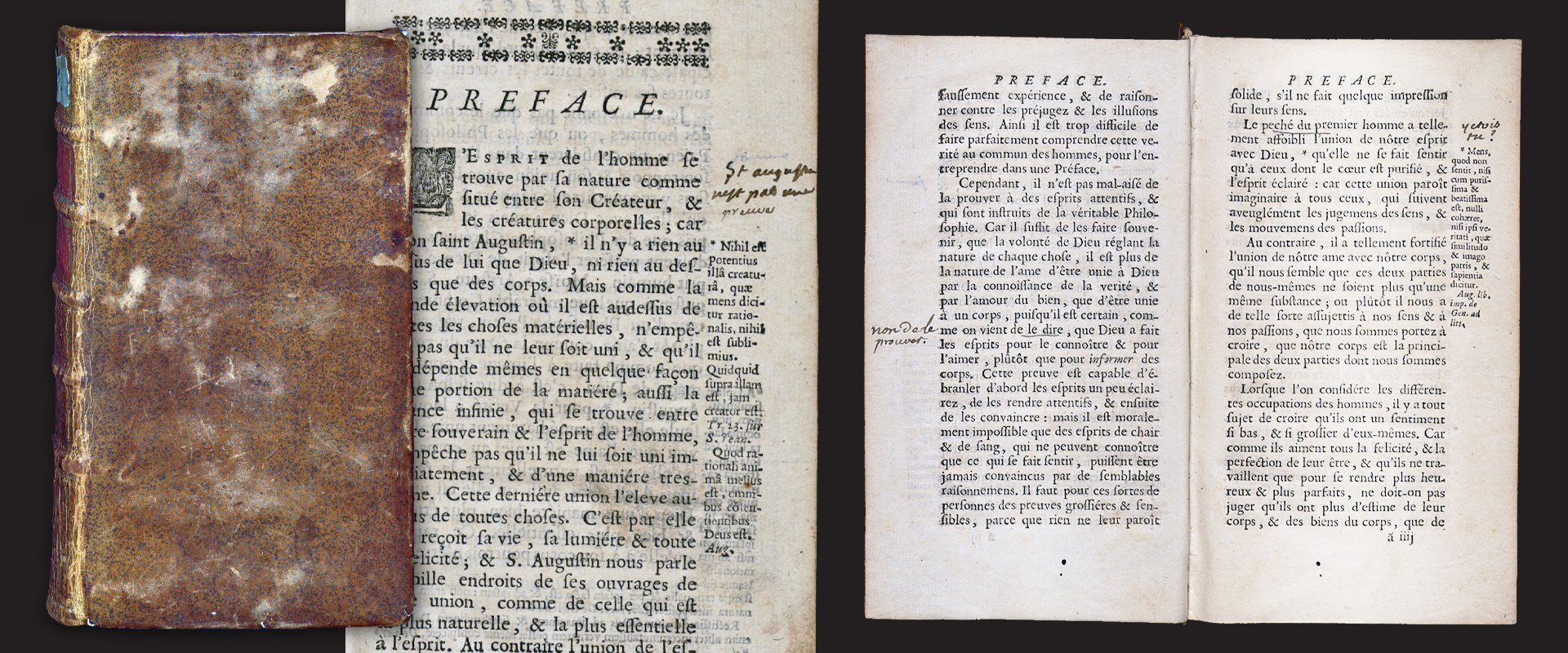 В библиотеке Вольтера сохранилось трёхтомное издание главного сочинения Мальбранша — «О разыскании истины, трактат о природе человеческого духа, а также о путях для избежания заблуждений в занятиях науками», впервые опубликованного в 1674–1675 годах.