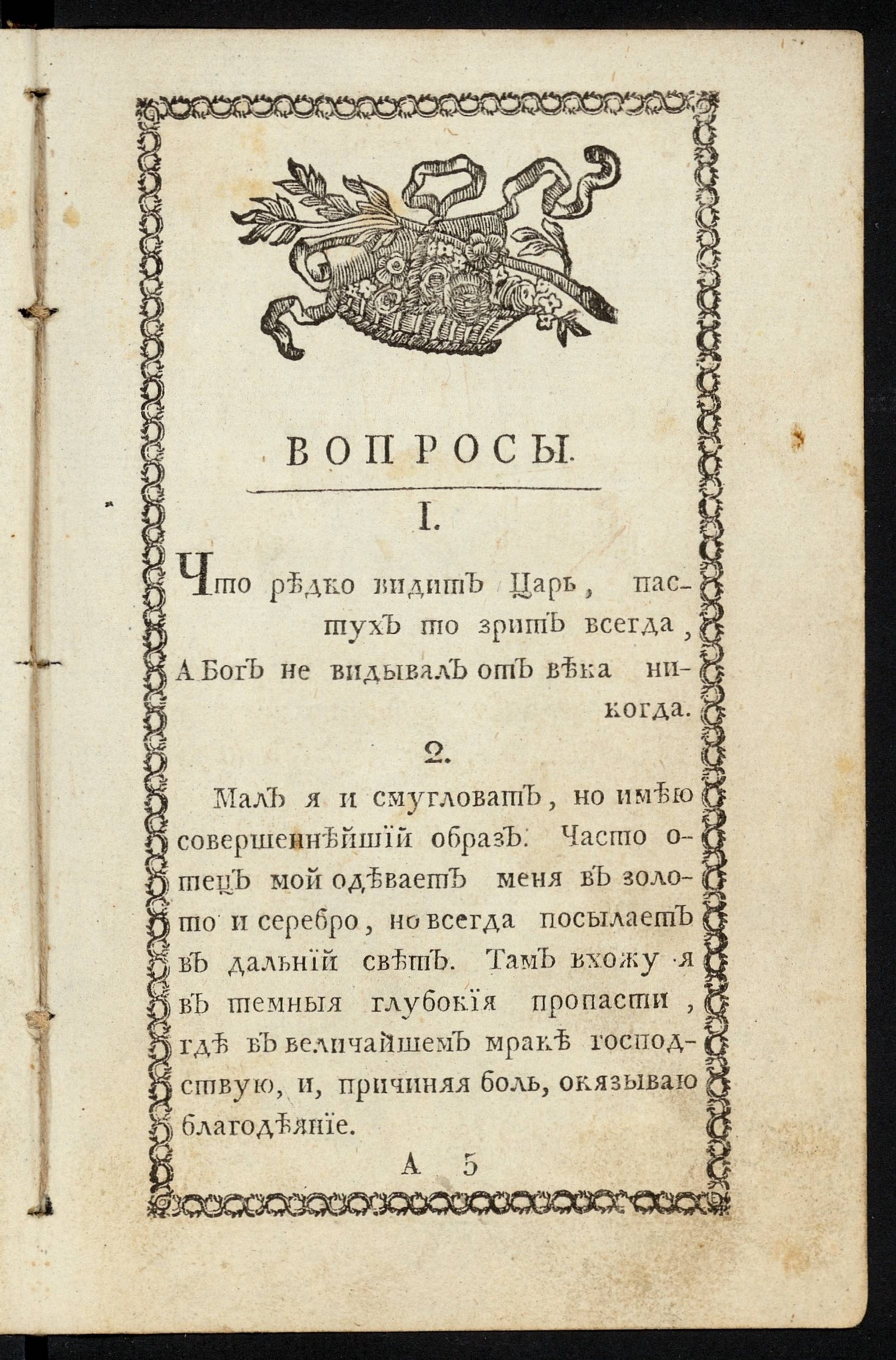 ИздательствоДетской гостинец, или Четыре ста девяносто девять загадок с ответами в стихах и прозе, взятых, как из древней, так и новейшей истории и из всех царств природы, : И собранных одним другом детей для их употребления и приятнаго препровождения времени