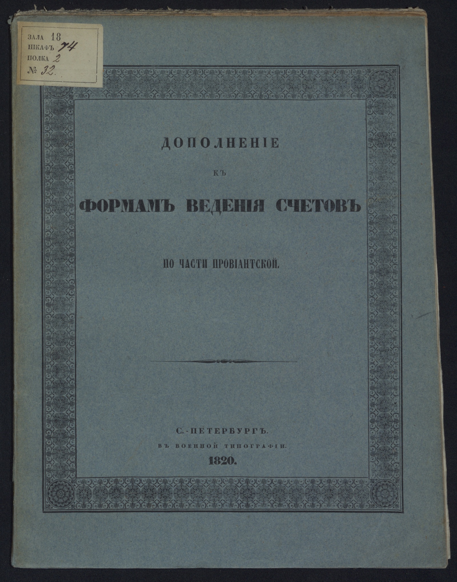 ИздательствоДополнение к формам ведения счетов по части провиантской