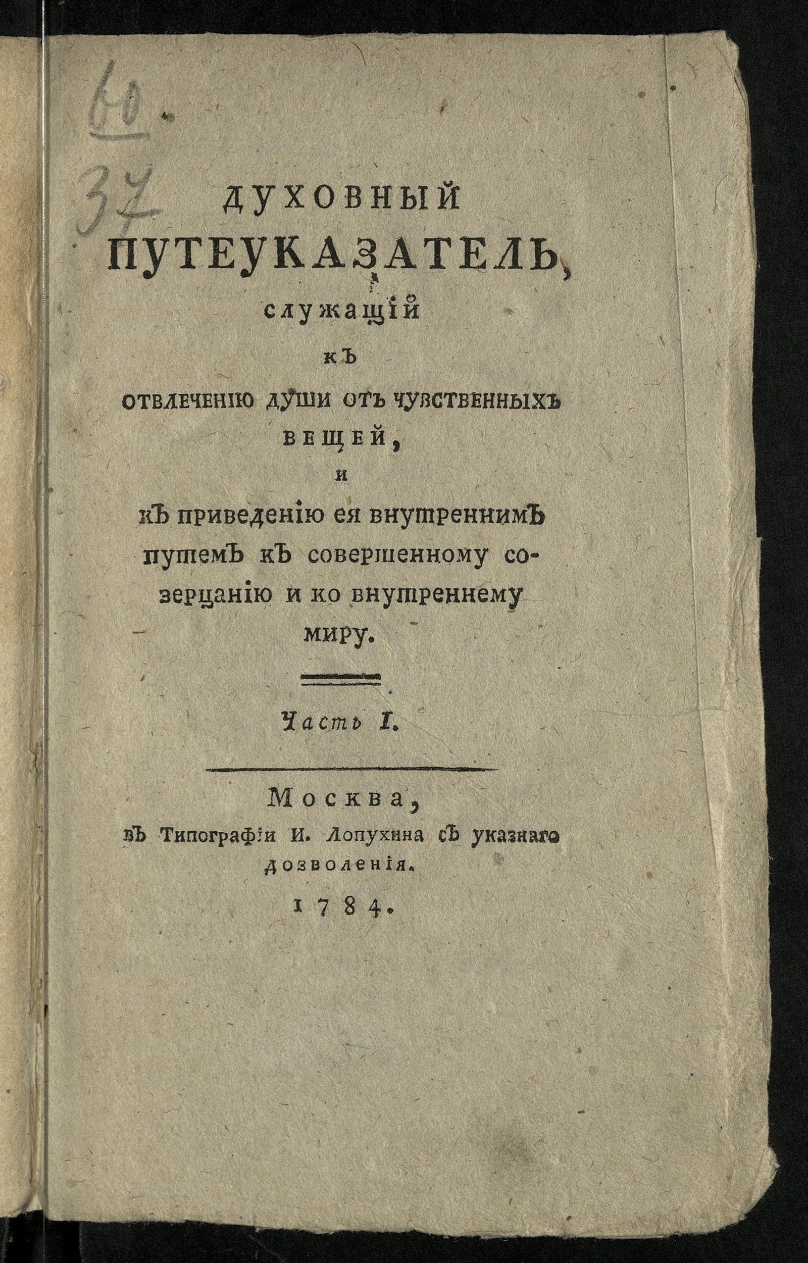 ИздательствоДуховный путеуказатель, : Служащий к отвлечению души от чувственных вещей, и к приведению ея внутренним путем к совершенному созерцанию и ко внутреннему миру. Ч. 2