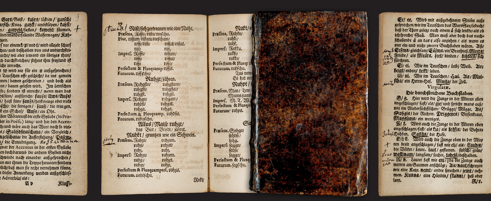 Экземпляр известнейшего труда XVII века по грамматике латышского языка из библиотеки М. В. Ломоносова, использованный им для работы над «Древней российской историей», с многочисленными пометами, оставленными его рукой.