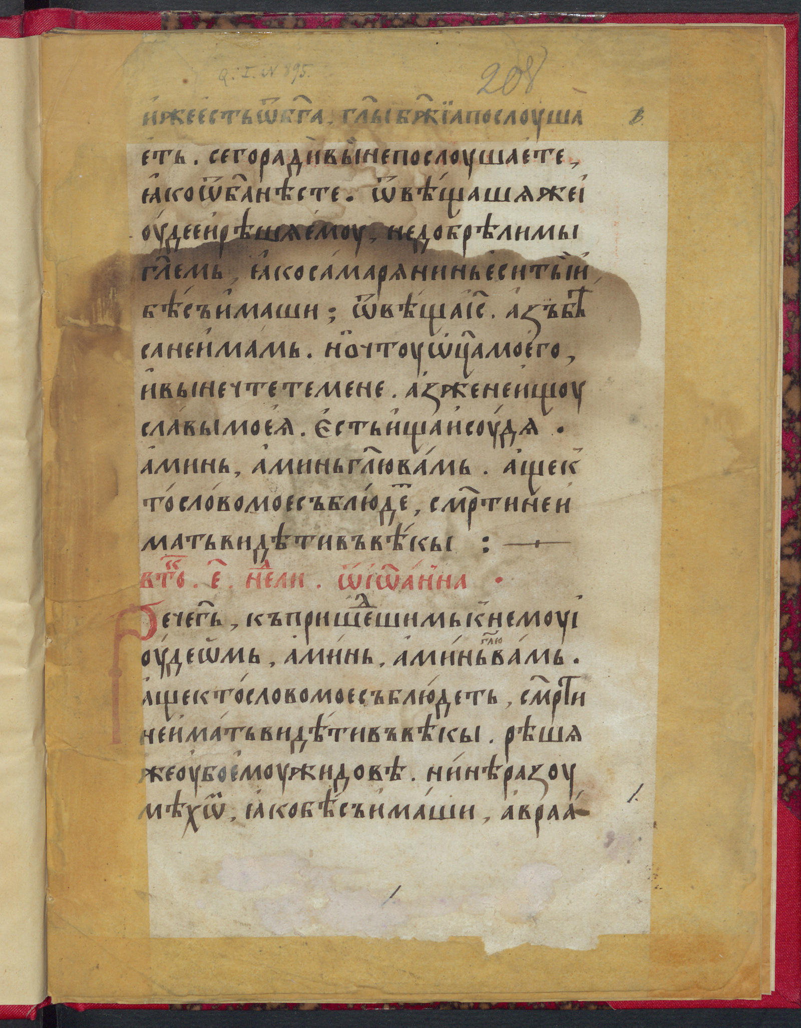 Переплет: Картон, оклеенный мраморной бумагой, корешок и уголки тканевые. Тип письма: Полуустав. Фрагментарность: Отрывок.