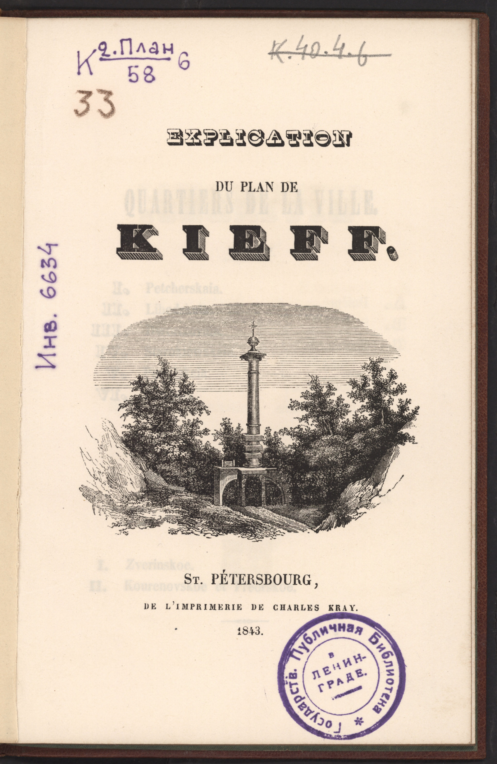 ИздательствоКиев, город. Explication du plan de Kieff [Карты]