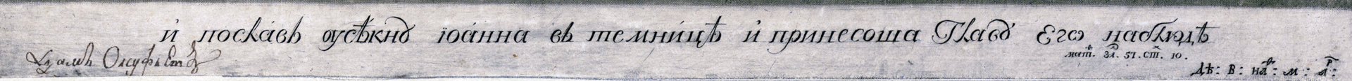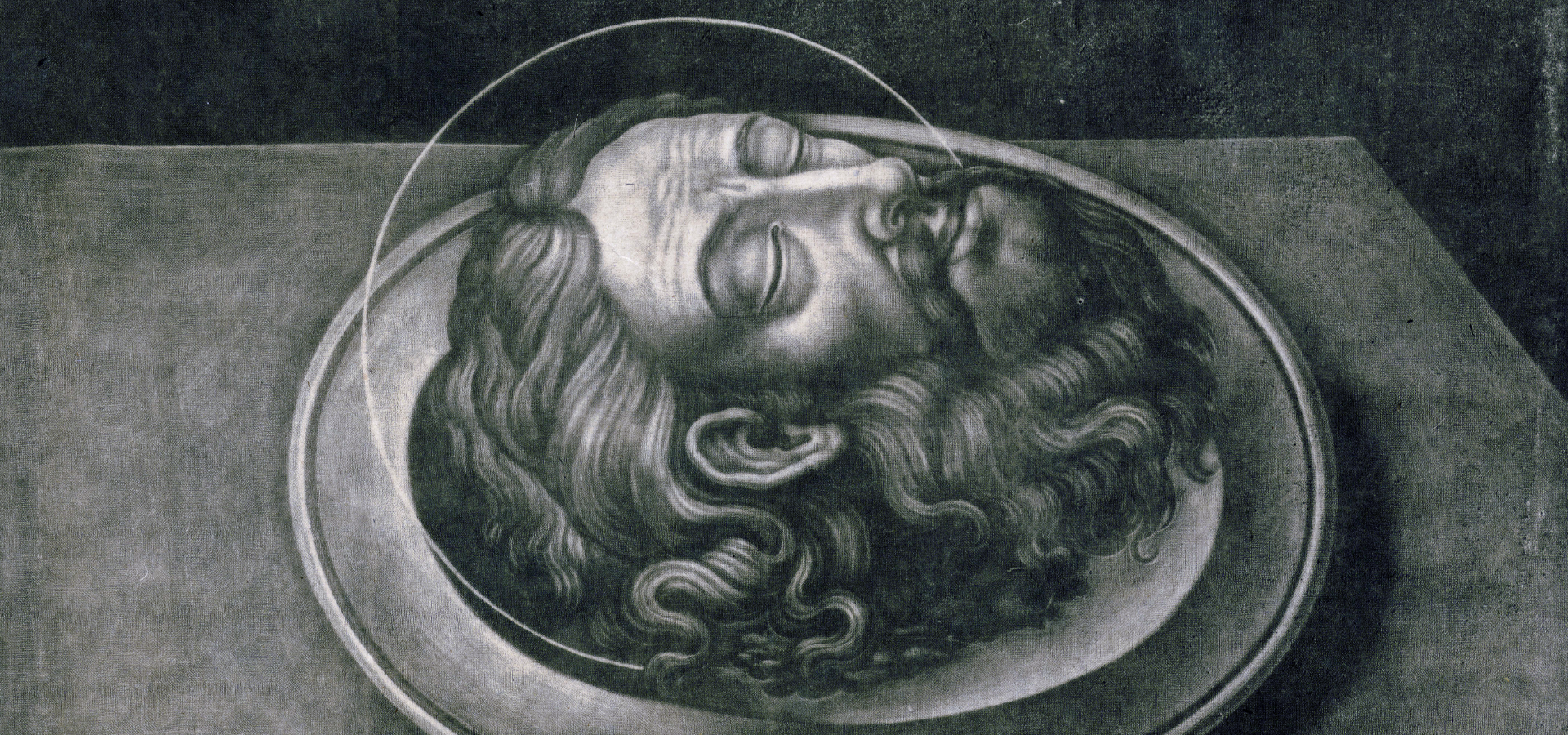 Гравюра из собрания А. В. Олсуфьева отражает один из эпизодов известного религиозного сюжета «Усекновение главы Иоанна Предтечи». Описываемая в Евангелии сцена повествует о казни святого пророка Иоанна, чью голову танцовщица Саломея, угодившая на пиру галилейскому царю Ироду, попросила в качестве награды. Изображения честной главы без фигуры Саломеи или палача-стражника в гравюре довольно редки, скорее это образ для иконописания. В коллекции он представлен в единичном экземпляре в сложной технике меццо-тинто.