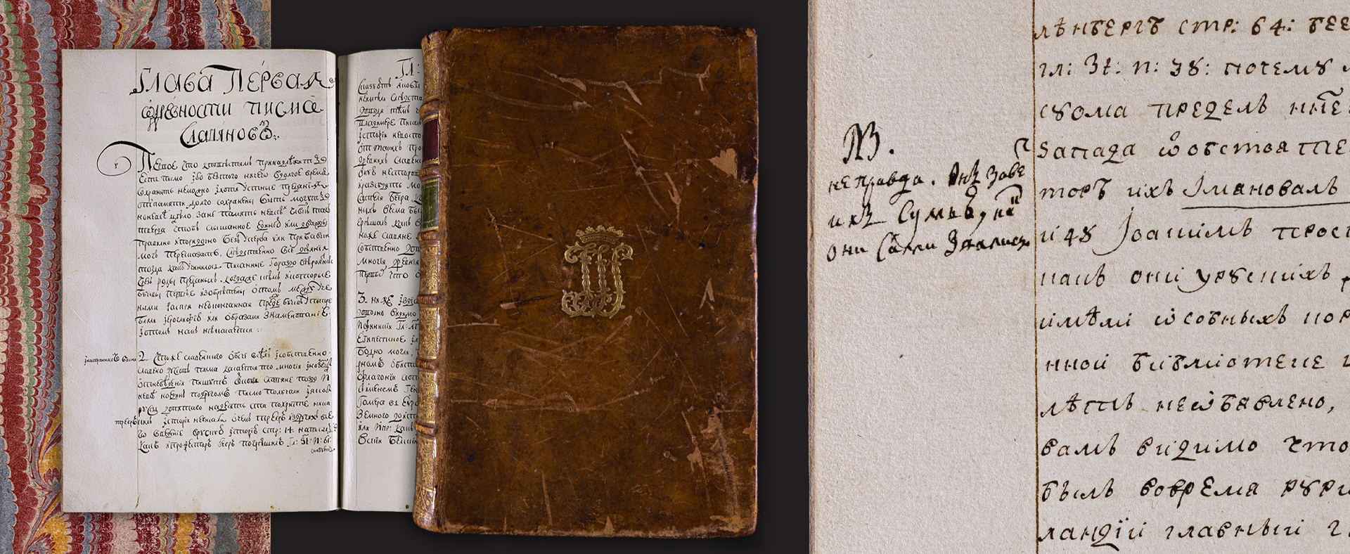 Содержание: Татищев В. Н. История Российская. 1-й том «первоначальной» (1 -й) редакции. Рукопись не была известна на момент критического издания памятника (Т. 1. М.-Л., 1962). Содержит чтения, отсутствующие в известных издателям списках, восходящие к протографу издания Г. Ф. Миллера 1768 г.