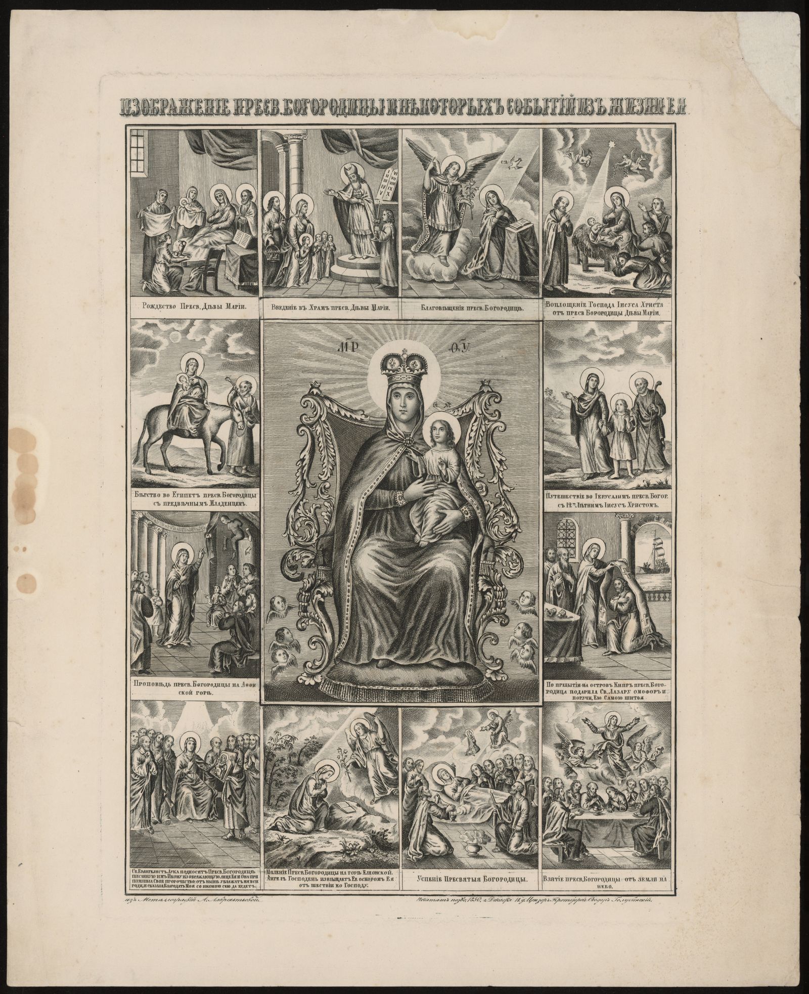 ИздательствоИзображение Пресв[ятыя] Богородицы и некоторых событий из жизни ея: [лубок] / Цензор протоиерей Феодор Голубинский