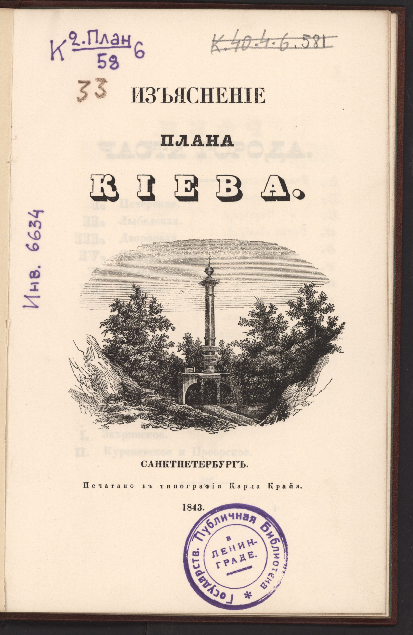 ИздательствоКиев, город. Изъяснение плана Киева [Карты]