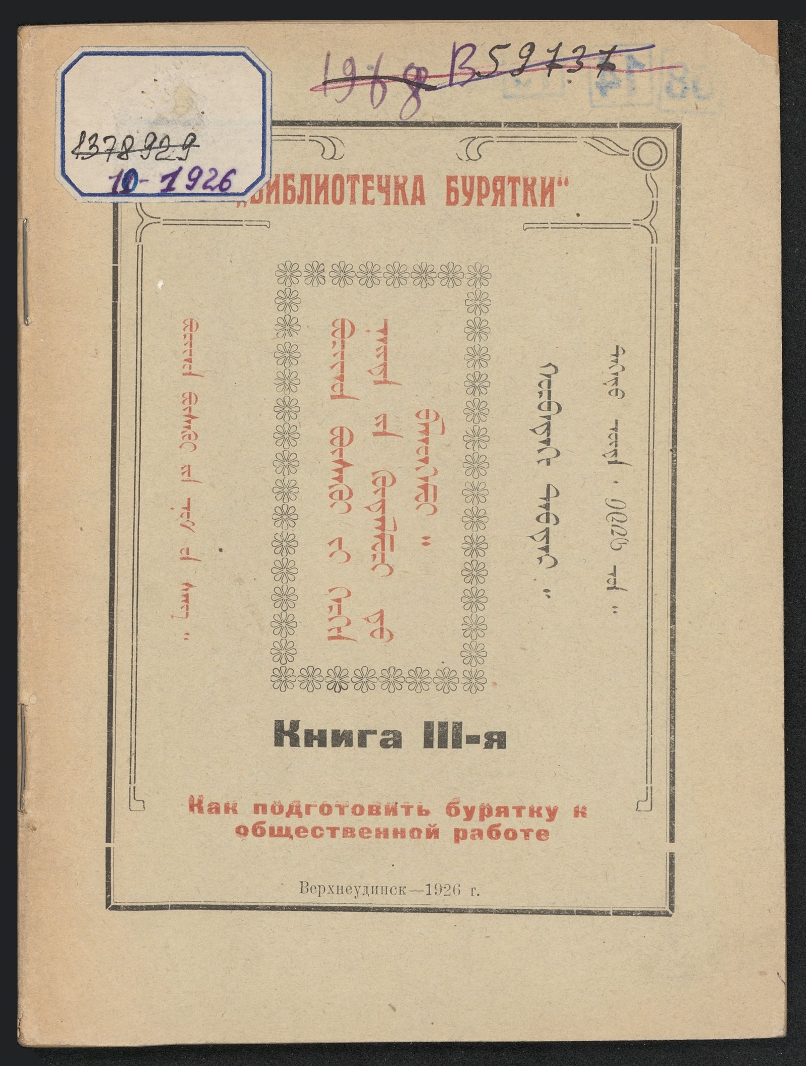 ИздательствоКак подготовить бурятку к общественной работе: Кн. III / Отдел работниц и крестьянок Буробкома ВКП (б)