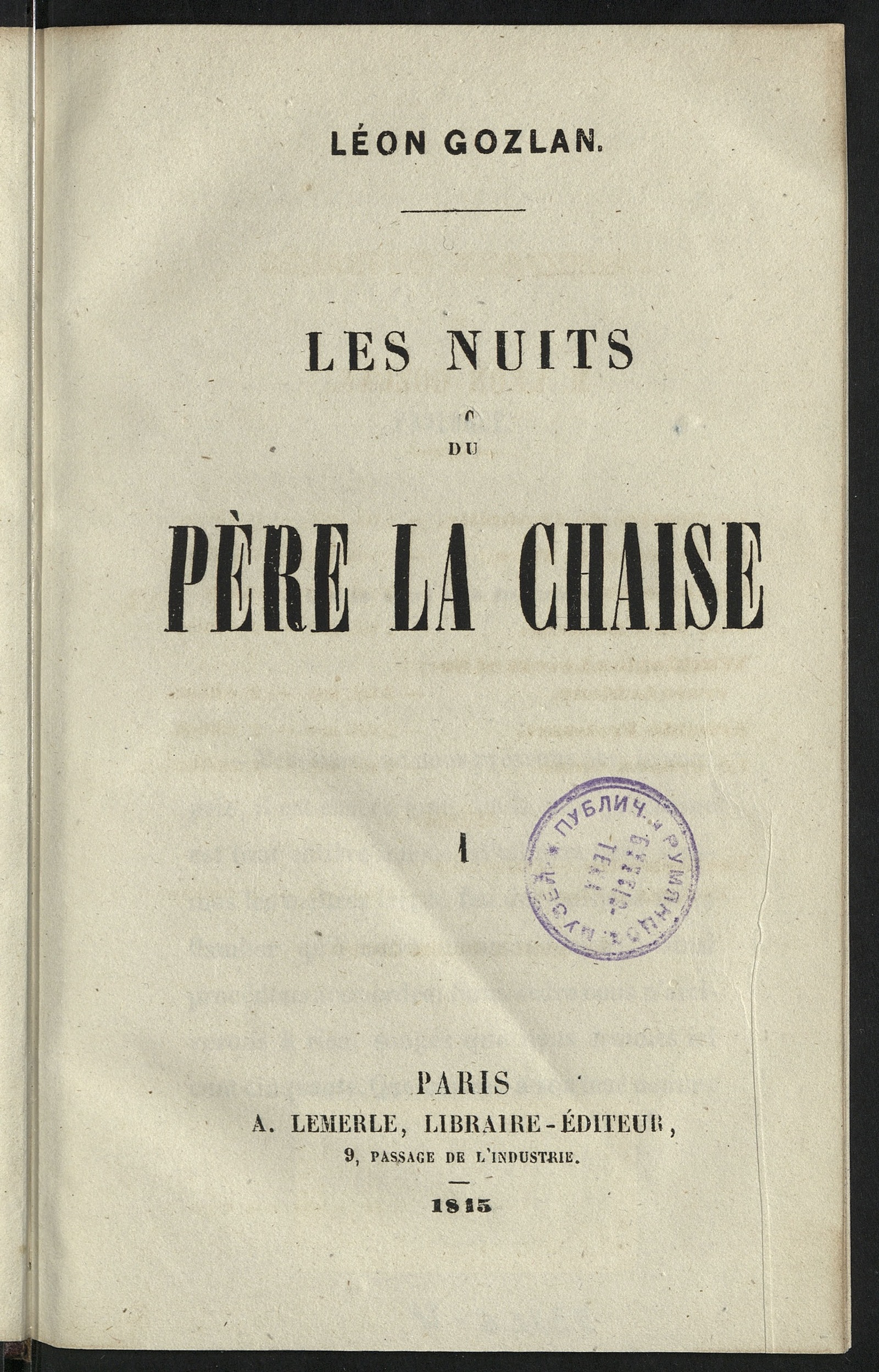 ИздательствоLes nuits du Père La Chaise / Léon Gozlan. 2