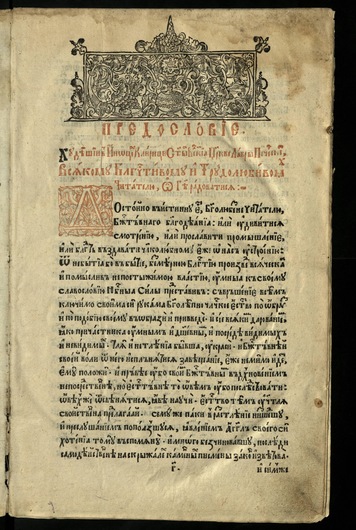 Записи / пометы: Запись 1859 г. о принадлежности книги библиотеке Троице-Сергиевой лавре — тит. л. (чернила); Пробы пера — форзацн. л.; Запись 1767 г. о принадлежности книги библиотеке Троице-Сергиевой лавре — 2-й форзацн. л.