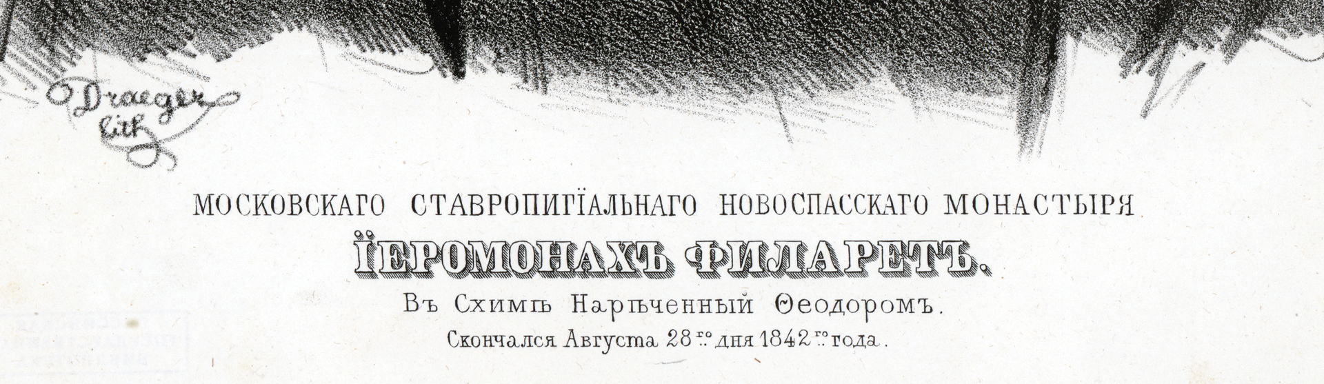 Портрет иеромонаха Филарета (в миру — Фёдор Николаевич Пуляшкин, 1758–1842) запечатлел человека удивительной судьбы, посвятившего жизнь духовному служению. Происходя из купеческой семьи г. Вязьмы Смоленской губернии, он прошёл долгий путь, став одним из самых уважаемых подвижников благочестия, старцем, к которому обращались за советом люди самых разных сословий.