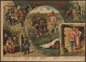 ИздательствоНародная песня: Уж нам некогда гулять — время работу работать! Уж мы день работу работали, ночь по улице гуляли — все посвистывали!.. : [лубок]
