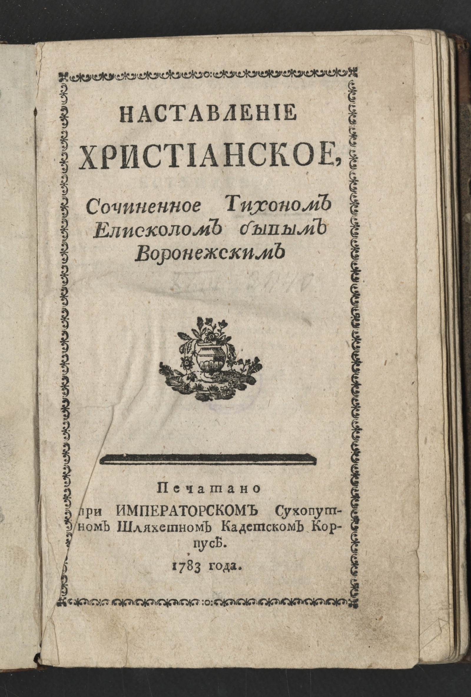 ИздательствоНаставление христианское, / сочиненное Тихоном епископом бывым Воронежским