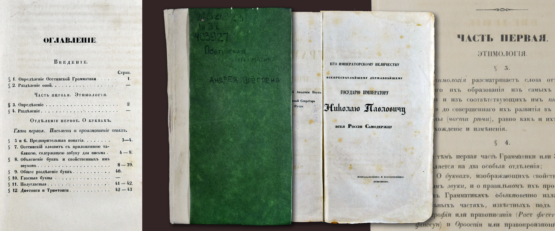 Имя Андрея Михайловича Шёгрена — российского академика, языковеда, историка, создателя осетинской грамматики воспринимается в Осетии с особым почтением и благодарностью. А. М. Шёгрен считается создателем осетинской азбуки на основе кириллицы, которая с некоторыми изменениями, внесенными в последующие годы, используется и в наши дни. Его «Осетинская грамматика» — первое научное исследование осетинского языка.