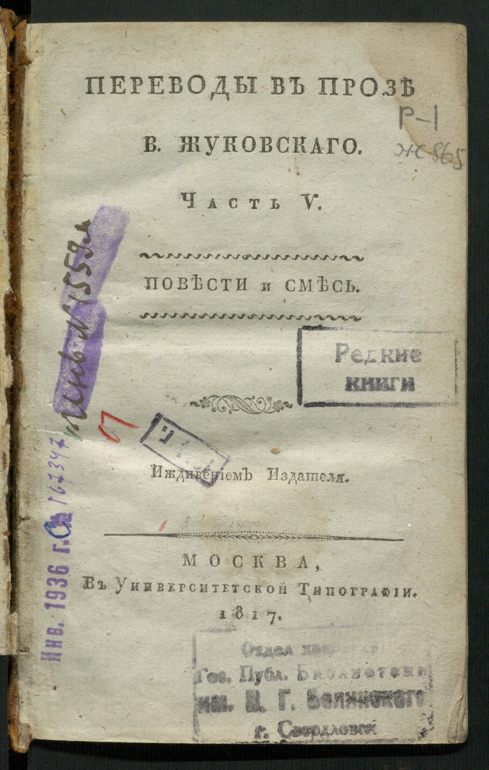 ИздательствоПереводы в прозе В. Жуковскаго. Ч. 4. Повести и смесь