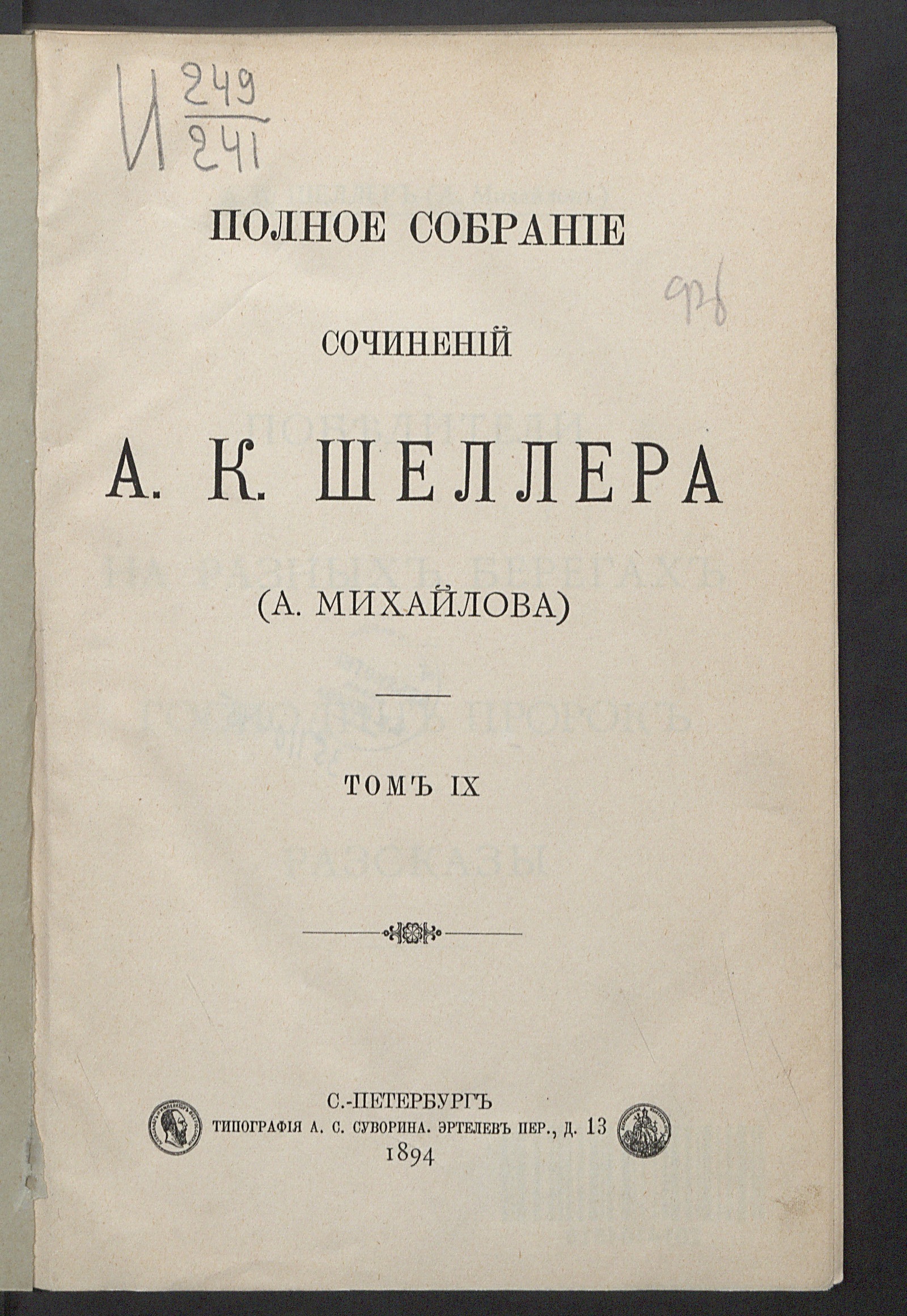 Полное собрание сочинений А.К. Шеллера (А. Михайлова). Т. 1-15. Т. 9. [Победители; На разных берегах; Господин пророк; Рассказы]