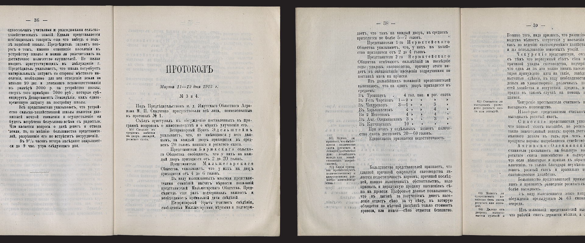 «Протоколы Олекминского сельскохозяйственного съезда 9, 10, 11 и 12 марта 1913 г.» — одно из немногих изданий Якутского областного агрономического совещания, вышедших в короткий период времени до революции.