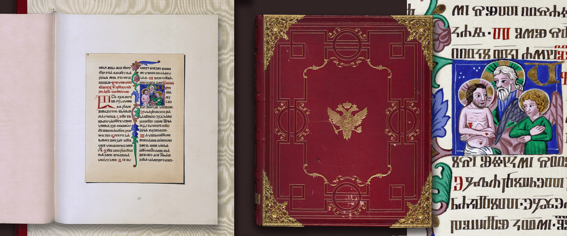 Особого внимания заслуживает сафьянный с золотым тиснением и изящными накладными защитно-декоративными элементами переплёт. В целом это высокий образец книги, предназначенной для дарения царствующей особе.