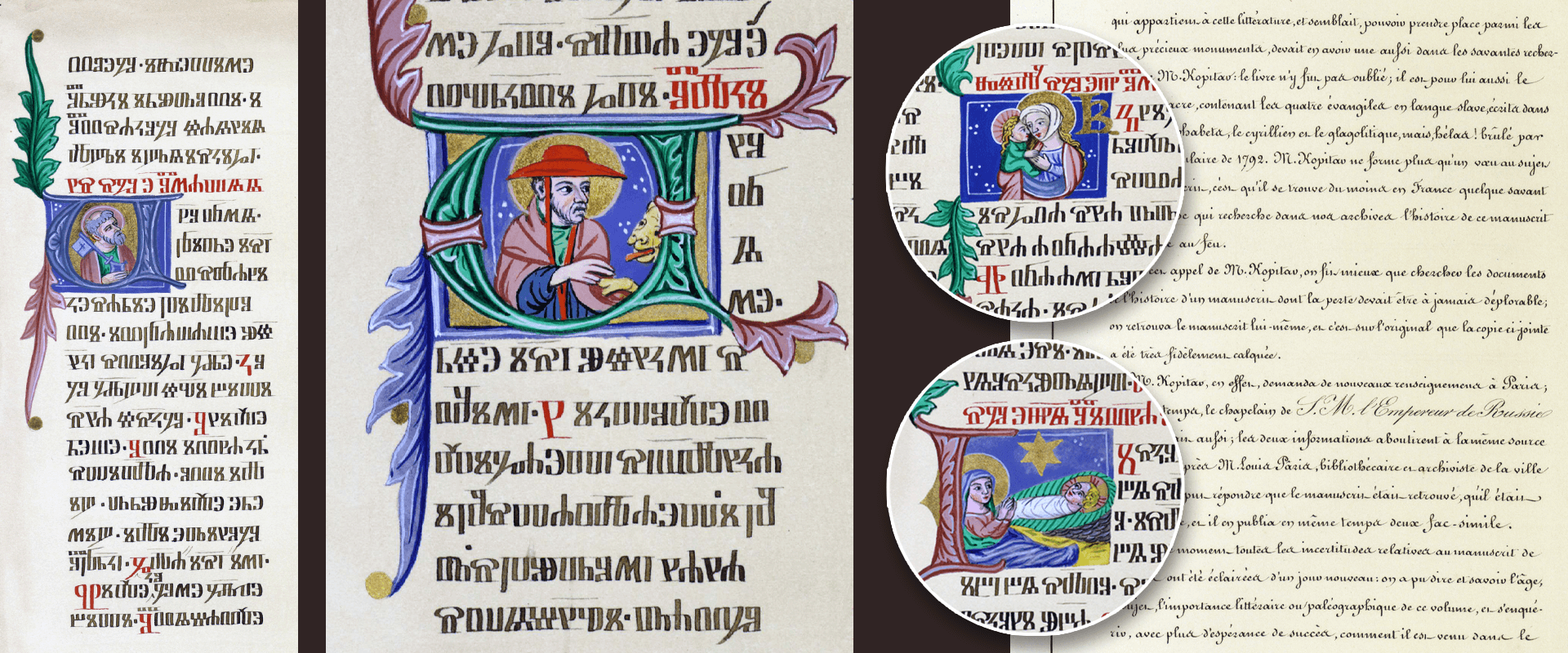 Литографированное издание Реймсского Евангелия — выдающееся произведение книжного искусства XIX века, созданное известным французским мастером каллиграфии Сильвестром. Он с максимально возможной точностью воспроизвёл непонятное для него письмо на двух славянских алфавитах — кириллице и глаголице. Тонко передан декор древнего манускрипта: заставки, инициалы и вписанные в буквицы миниатюры выполнены красками вручную.