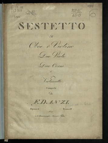 ИздательствоSestetto: per oboe ô violino, due viole, due corni e violoncello: op. 10 / composto da F. Danzi