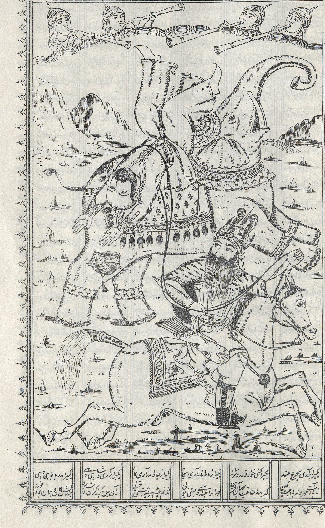 Представленный экземпляр, напечатанный в Тебризе, является уникальным образцом иранской литографии. Издание украшают многочисленные изображения исторических и мифических героев, ключевых сцен и сюжетов поэмы.