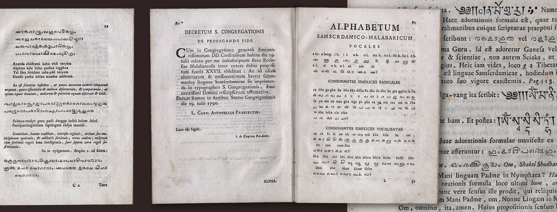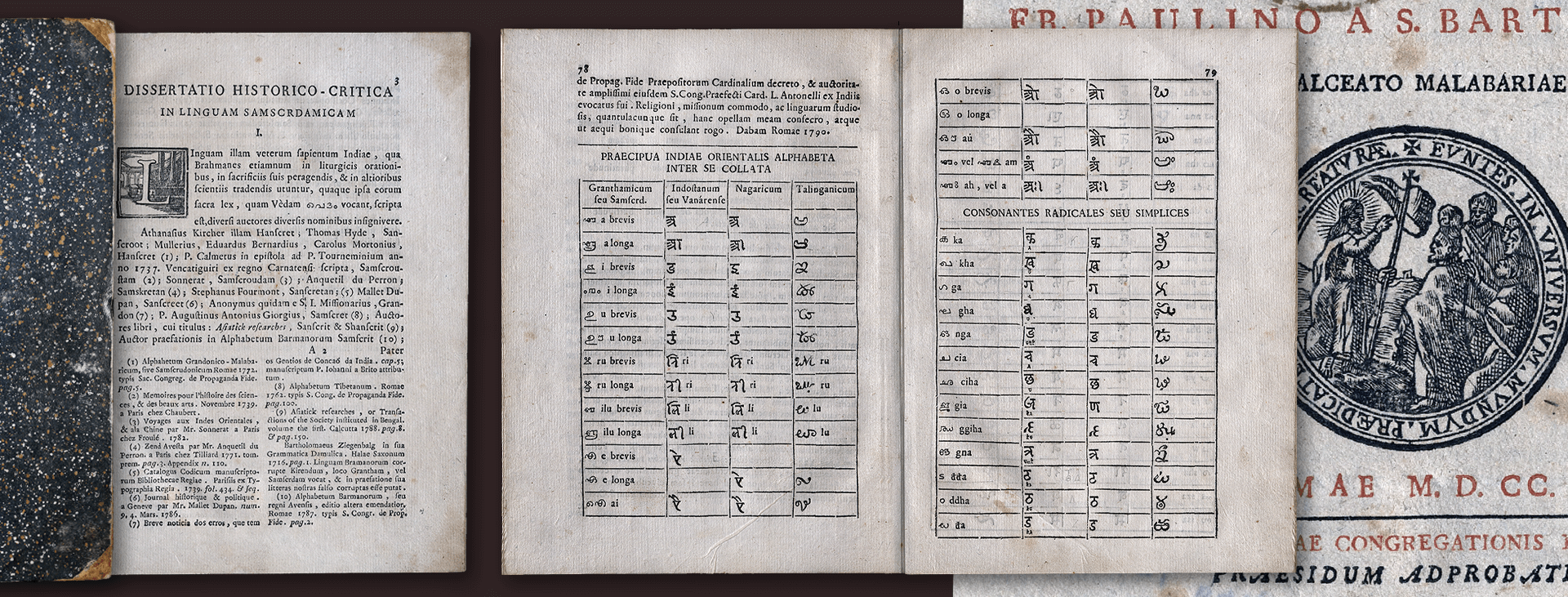 Первое прижизненное издание грамматики санскрита, подготовленное монахом ордена босых кармелитов, миссионером и востоковедом Паолином Святого Варфоломея, известным также как Иван Вездин.