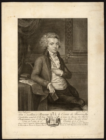 Son Excellence Monsieur le comte de Skawronsky, chambellan actuel de S.M. Imp. de toutes les Russies, son ministre plenipotentiaire pres S.M. le roi de deux Siciles chevalier grand croix de l’ordre de St. Wladimir de la 2de. classe: [эстамп] / Guglielmo Morghen sculp. ; Angelica Kauffmann pinx. ; gravée d’après l’original de Madame Kauffmann par ordre de S.E. Madame la comtesse douairiere de Skawronsky, née baronne de Strogonow dame de portrait de S.M. l’Imperatrice de toutes les Russies etc. etc.