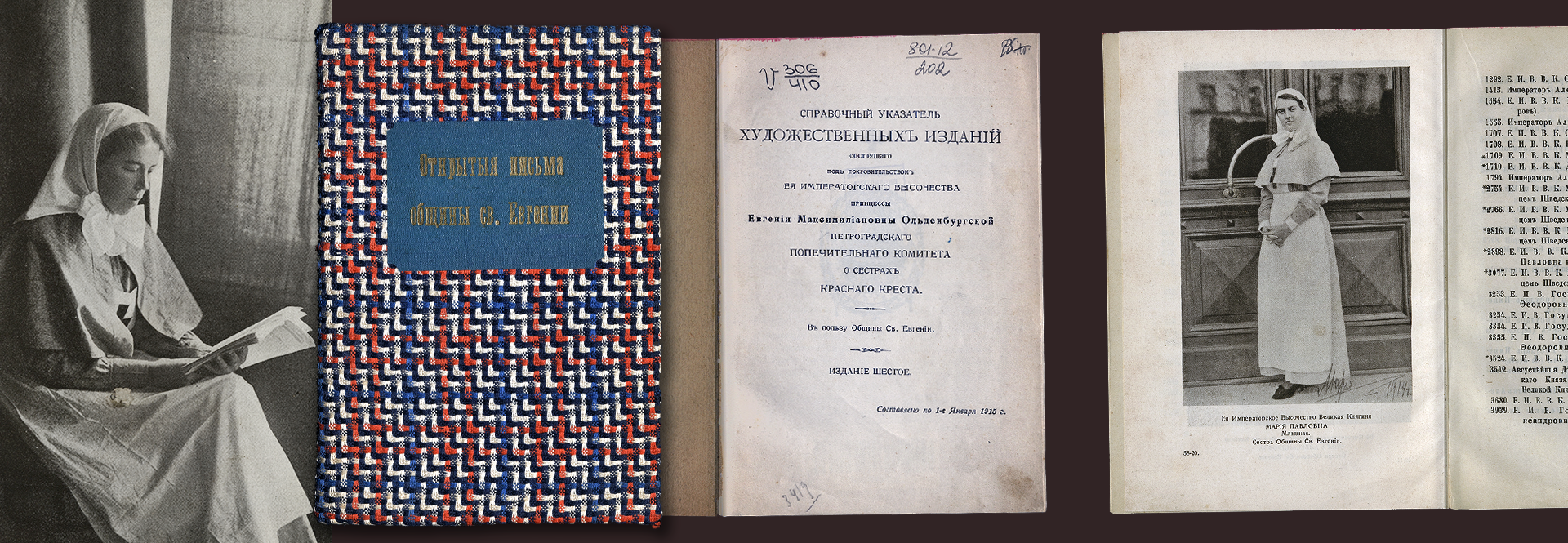Перед нами сборник, посвящённый благотворительной деятельности Общины святой Евгении в Санкт-Петербурге. Община святой Евгении Красного Креста была создана в 1893 году как организация для поддержки сестёр милосердия. Сёстры общины оказывали медицинскую помощь населению и через Комитет попечения о сёстрах милосердия Красного Креста готовили новые кадры. Община не только принимала пожертвования, но и зарабатывала сама, продавая разнообразные печатные издания, включая открытки.