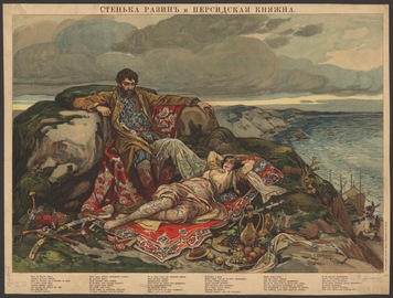 ИздательствоСтенька Разин и персидская княжна: Есть на море утес, диким мохом оброс… : [лубок] / [худож.] Апсит
