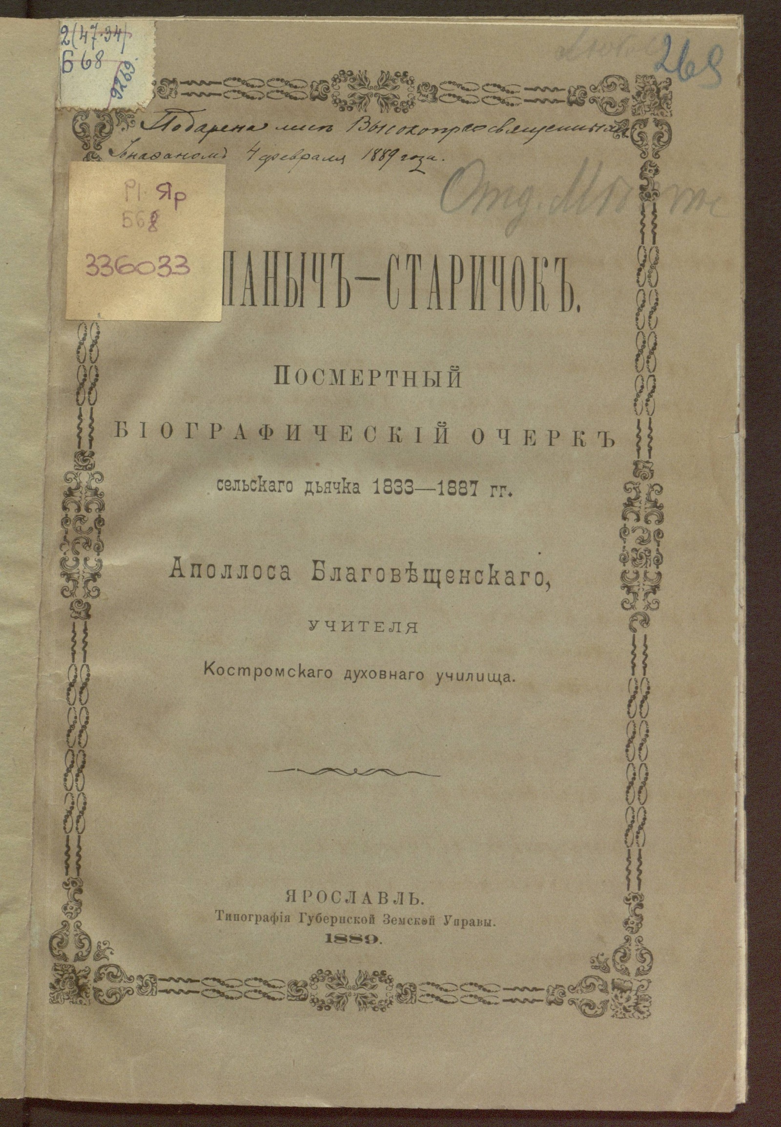 Степаныч-старичок: посмертный биографический очерк сельского дьячка 1833–1887 гг. / Аполлоса Благовещенского, учителя Костромского духовного училища