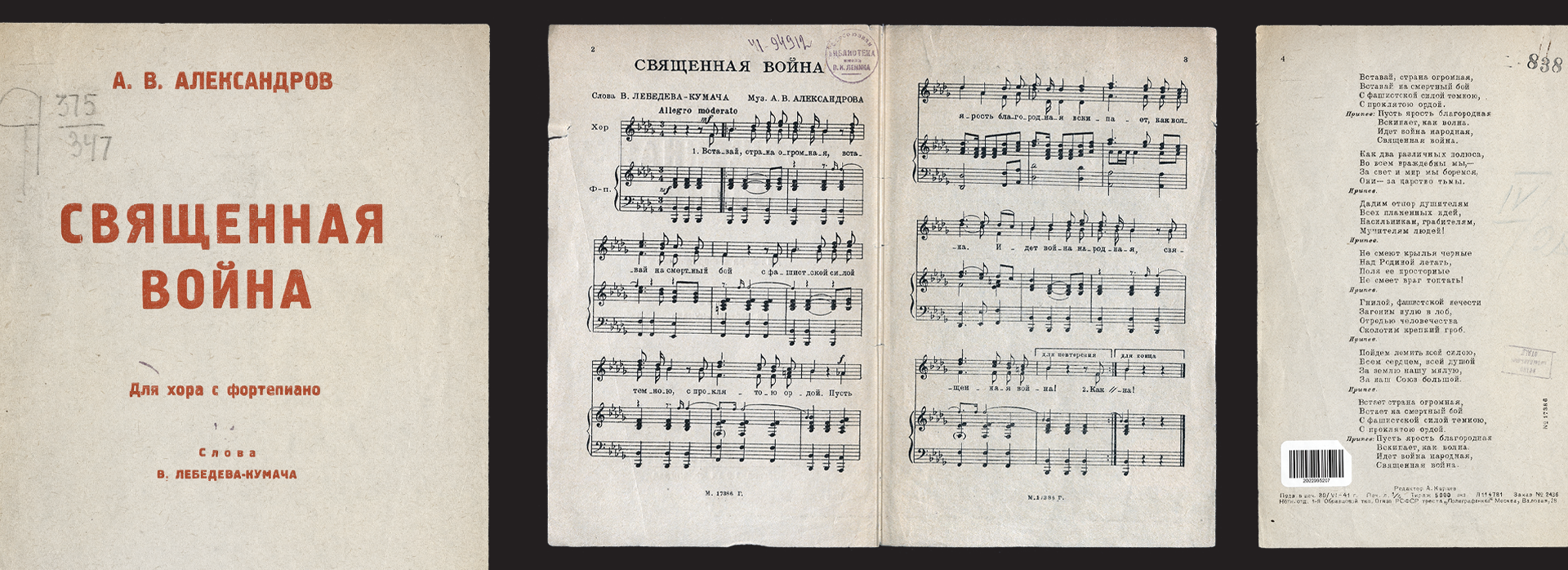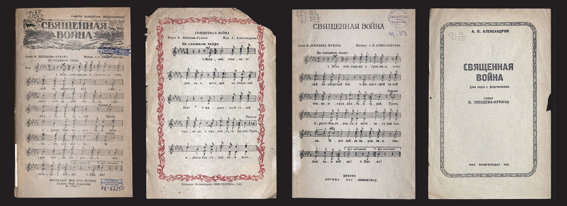 Многие композиторы и поэты работали в песенном жанре, мобильном и обладающем огромной силой непосредственного воздействия. Песни военных лет вошли в историю и культуру народа. И среди них особое место занимает песня «Священная война».