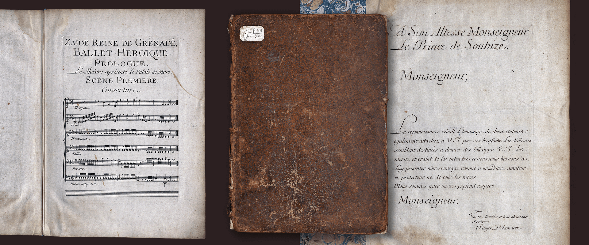 Партитура представляет собой первое издание «Заиды», включающее текст Генеральной привилегии «Людовика, Божьей милостью короля Франции и Наварры»: этот документ закрепляет за автором «первостепенное право публикации, печатания, гравировки этой оперы, названной „Заида, королева Гранады, героический балет“ и всех иных его музыкальных сочинений, как вокальных, так и инструментальных». Нотный текст предваряет авторское посвящение произведения «Его Высочеству Монсеньору Принцу де Субиз, … известному своей добротой, … и прирождённому ценителю и покровителю всех талантов», подписанное композитором Руйе и либреттистом Деламарром.