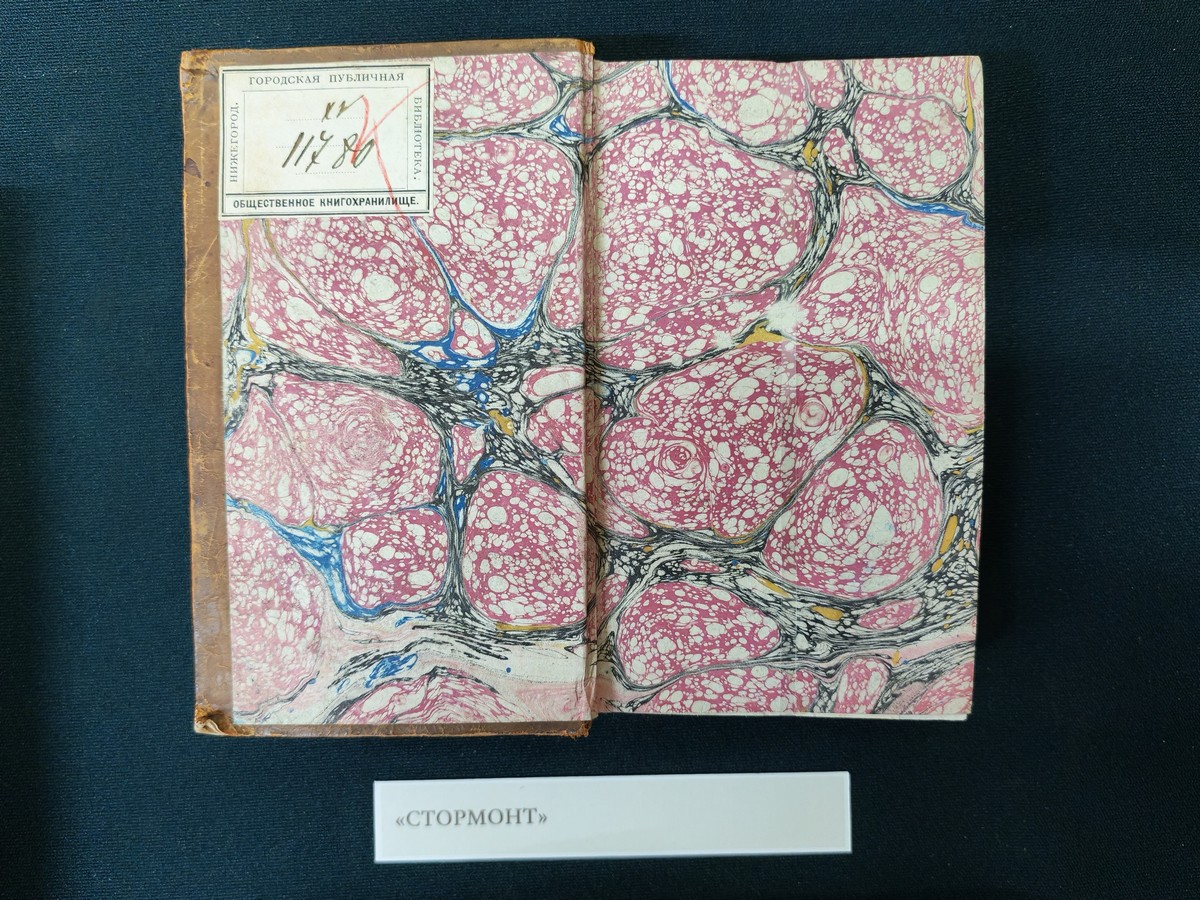 Выставка «Чарующие узоры»: декоративная бумага в книжных переплётах из собрания нижегородской Ленинки», которая открылась в читальном зале отдела редких книг и рукописей Нижегородской государственной областной универсальной научной библиотеки им. В. И. Ленина, привлекает внимание к красивому и необычному способу оформления книг.