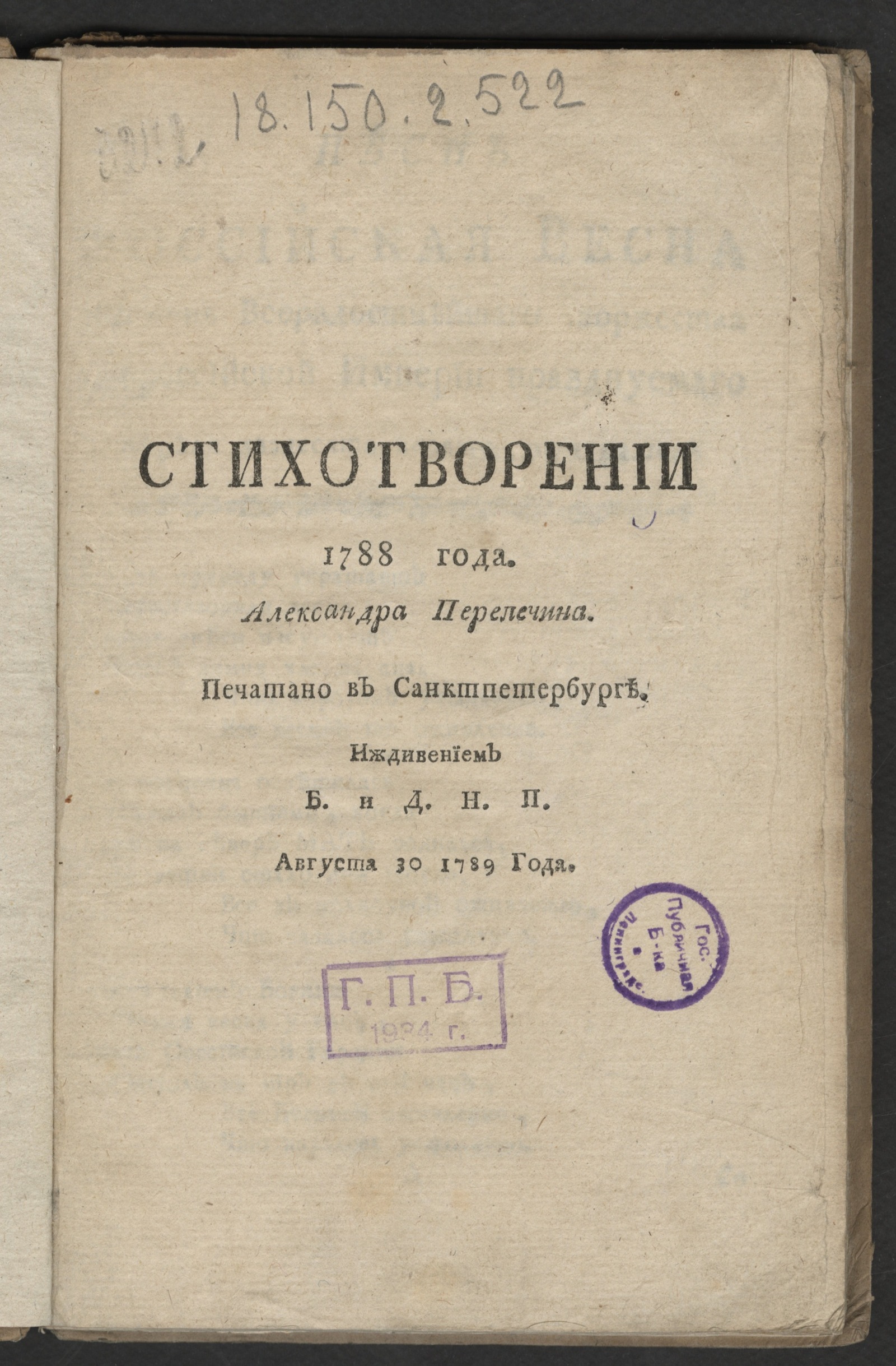 Стихи на первое пришествие в Москву Их императорских Высочеств ... Александра Павловича и Константина Павловича