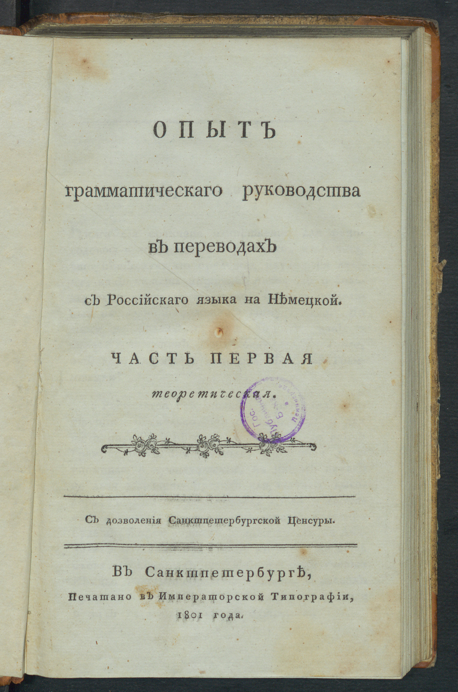 Опыт грамматическаго руководства в переводах с российскаго языка на немецкой. Ч. 2