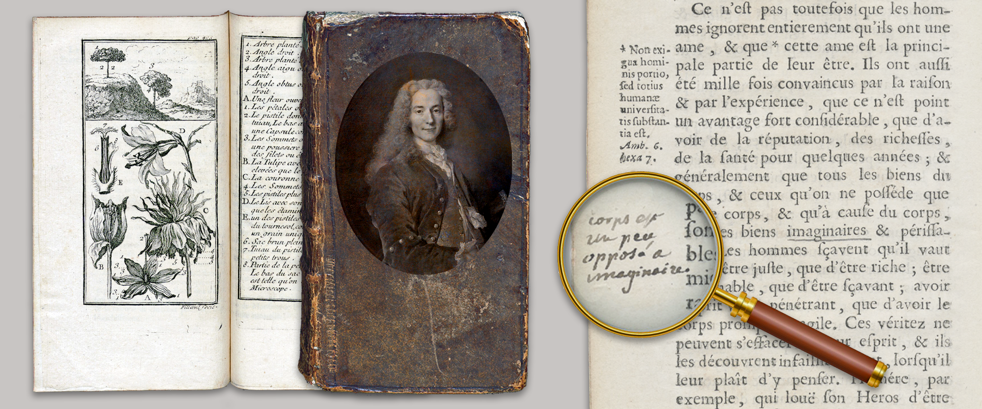 Книги были для него инструментом решения научных и творческих задач. Более трети томов имеют читательские пометы Вольтера — маргиналии. Эти пометы отражают движение мысли великого человека без цензуры. Они активно изучаются исследователями: в 2019 году было завершено издание десятитомного «Корпуса читательских помет Вольтера».