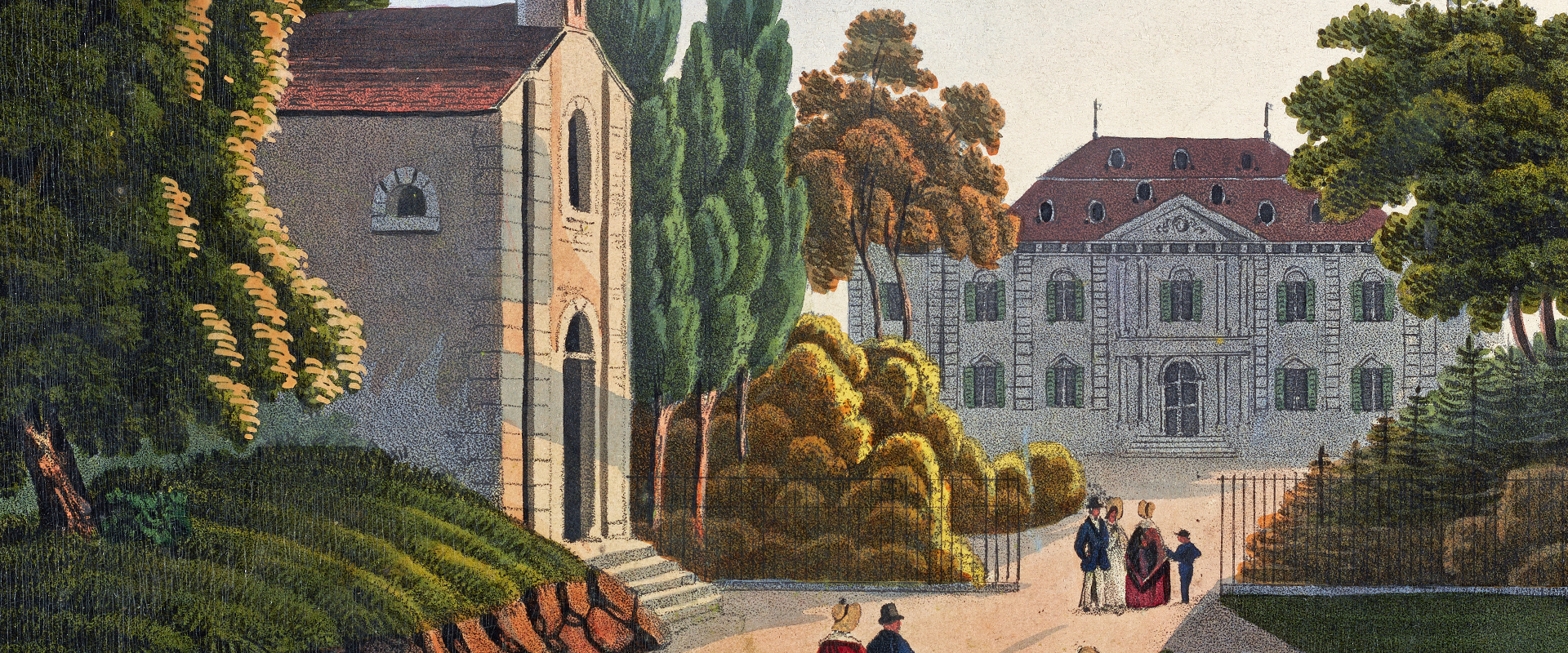 Фрагмент литографии Джозефа Келлнера. Замок Ферней, резиденция Вольтера. XIX век